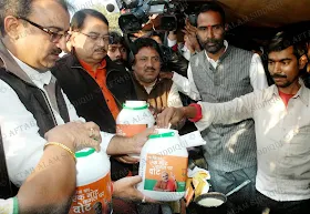 BJP state president Mangal Pandey launched his party's one note one vote campaign in Patna on February 11, 2014.