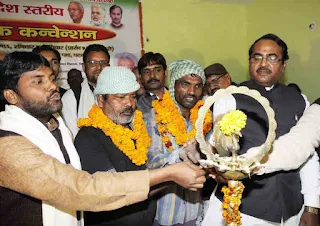 Janata Dal-United leader Nihora Parasad Yadav inaugurated a meeting of his party's Labour Cell in Patna on December 12, 2015.